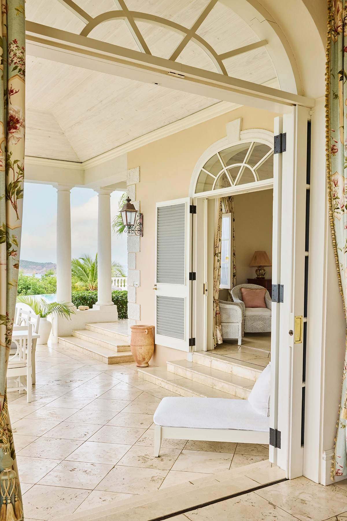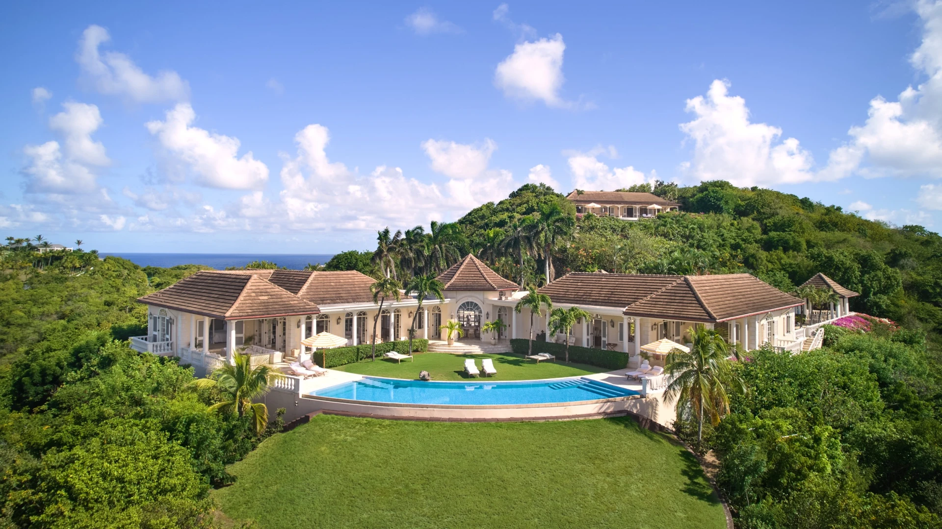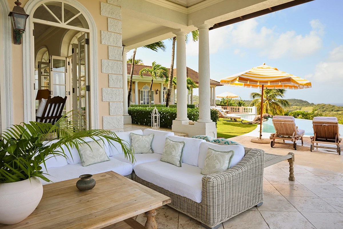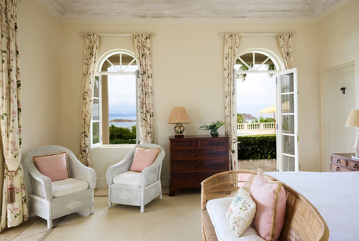 The immaculate driveway and gardens give a glimpse of the delights ahead in this beautifully decorated and recently refurbished villa. However as the breathtaking views become visible it becomes apparent that Lavender Hill really is in a league of its own in terms of position. Three vast bedroom suites occupy the main house and a further two are in the entirely self sufficient guest cottage which also has its own living room and a beautiful swimming pool. The main house boasts breezy high ceilinged reception rooms leading onto extensive terraces which are surrounded by mature gardens and give way to a fan shaped swimming pool with one of the most staggering views on the island. The villa is an ideal choice for a multigenerational house party or two families holidaying together but wanting a little of their own space too.