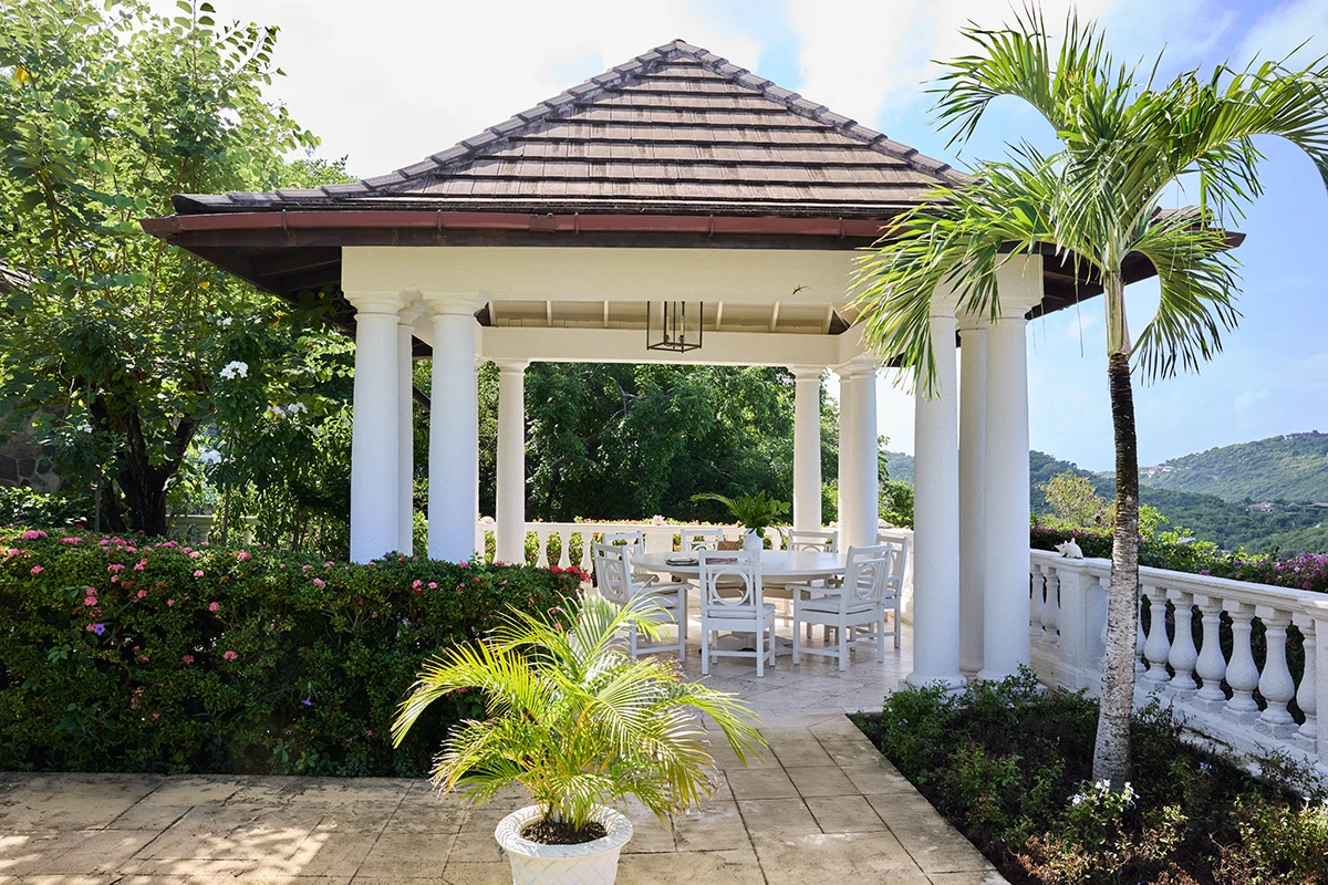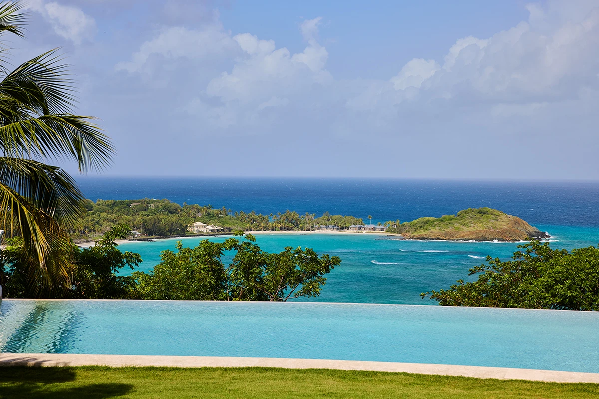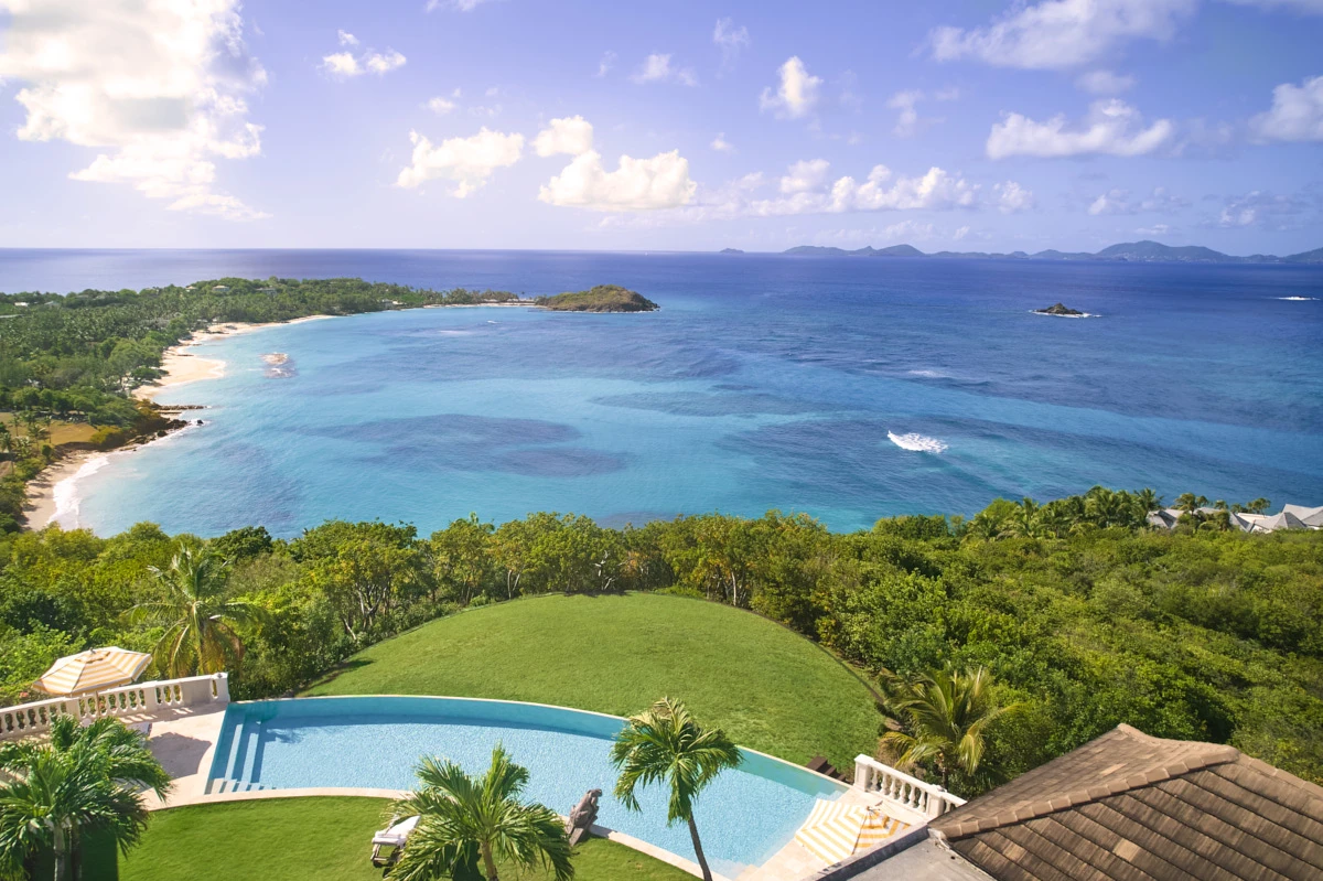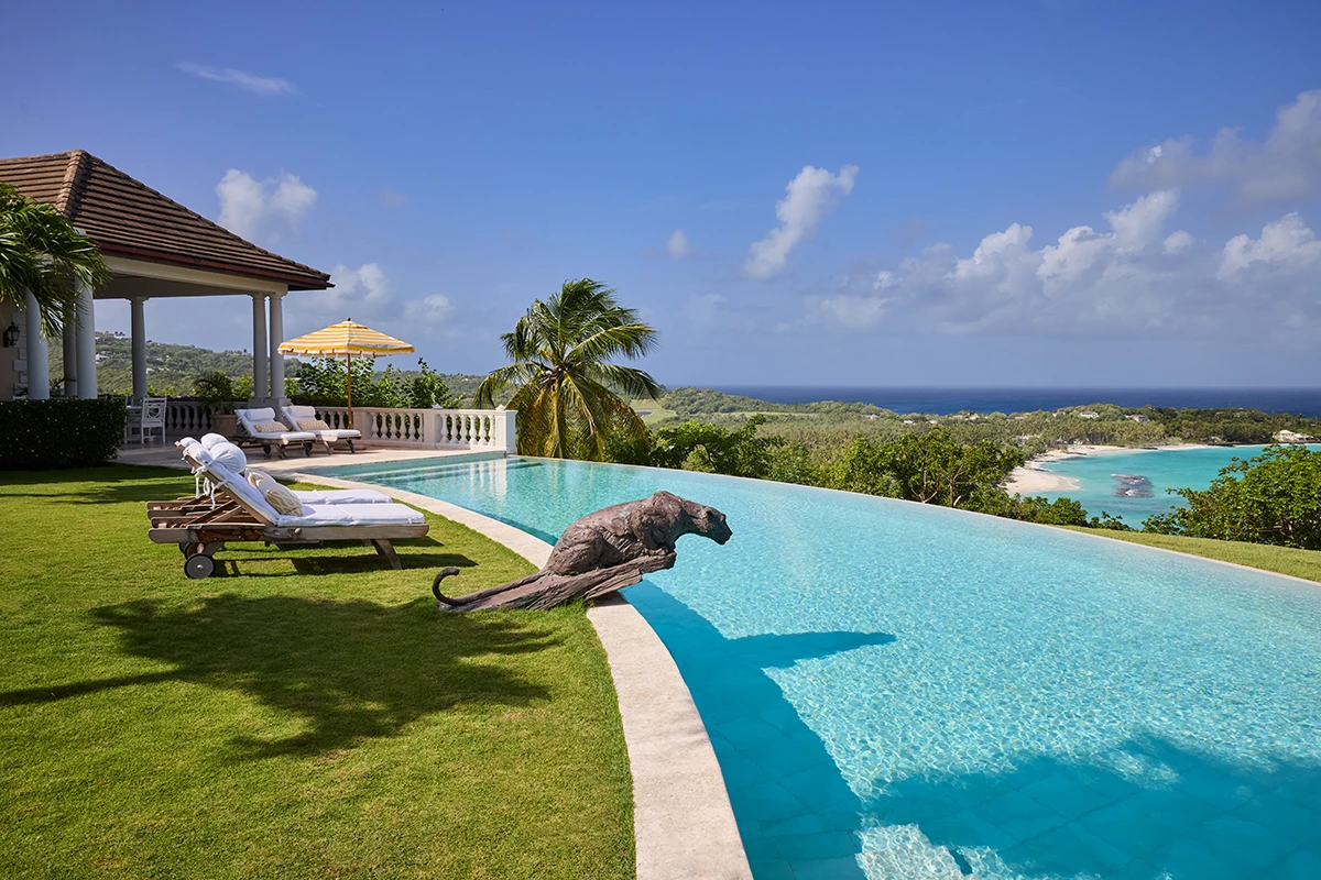 Lavender Hill is a large and sophisticated villa with a stunning standalone guest cottage set high up in the hills with spectacular views across L'Ansecoy Bay.