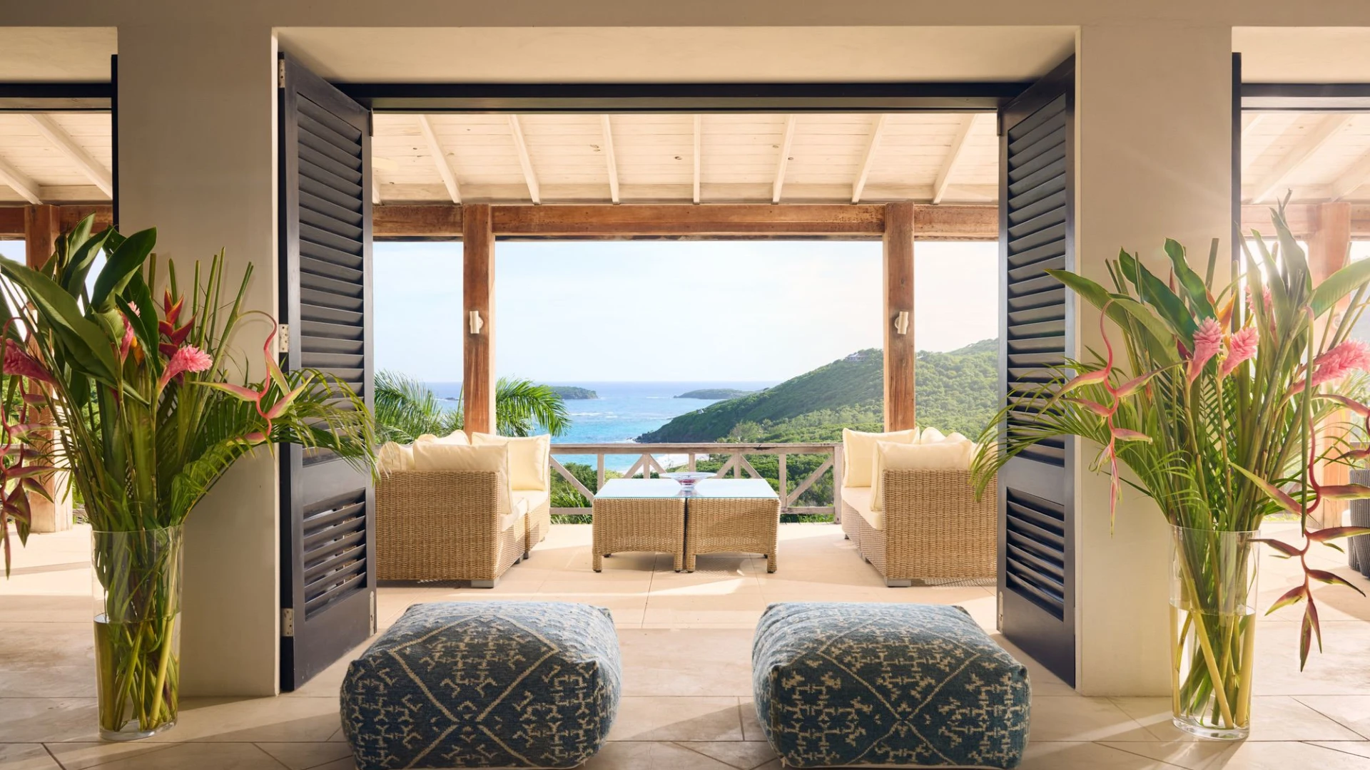 The villa’s Great Room is surrounded by an elegant wraparound Veranda and the glorious terraces spilling down the jungly hillside below are a key design feature. Each of the three standalone bedroom suites offers expansive outside space from which to enjoy the magnificent coastal views.
