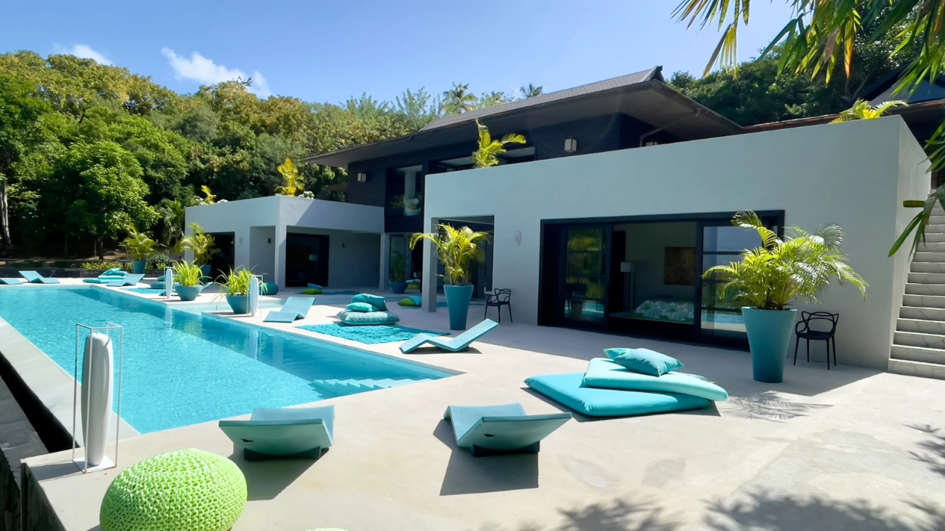 Aria, formerly known as Ca d'Oro, was designed by Paolo Piva and is a striking Japanese vision of contemporary design, carefully hidden away within the mature, surrounding natural Mustique vegetation and wild tropical island landscaping.