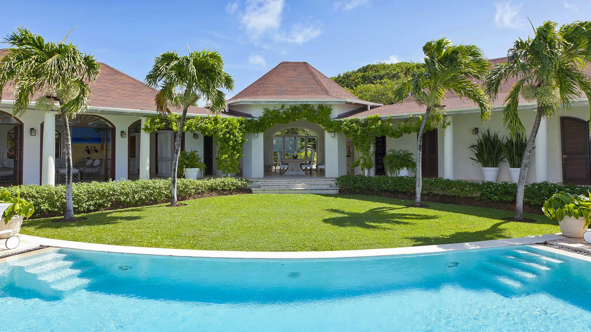 Rising above L’Ansecoy Bay, this perfectly proportioned fan-shaped villa follows the line of the cliff below, and is blessed with staggering views of the bay giving way to Bequia and St. Vincent beyond.