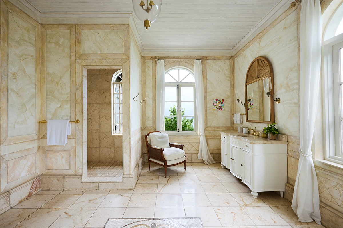 The immaculate driveway and gardens give a glimpse of the delights ahead in this beautifully decorated and recently refurbished villa. However as the breathtaking views become visible it becomes apparent that Lavender Hill really is in a league of its own in terms of position. Three vast bedroom suites occupy the main house and a further two are in the entirely self sufficient guest cottage which also has its own living room and a beautiful swimming pool. The main house boasts breezy high ceilinged reception rooms leading onto extensive terraces which are surrounded by mature gardens and give way to a fan shaped swimming pool with one of the most staggering views on the island. The villa is an ideal choice for a multigenerational house party or two families holidaying together but wanting a little of their own space too.