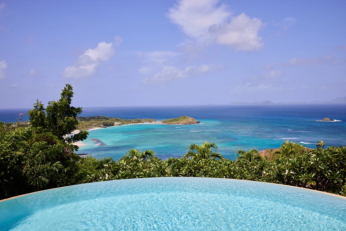 Lavender Hill is a large and sophisticated villa with a stunning standalone guest cottage set high up in the hills with spectacular views across L'Ansecoy Bay.
