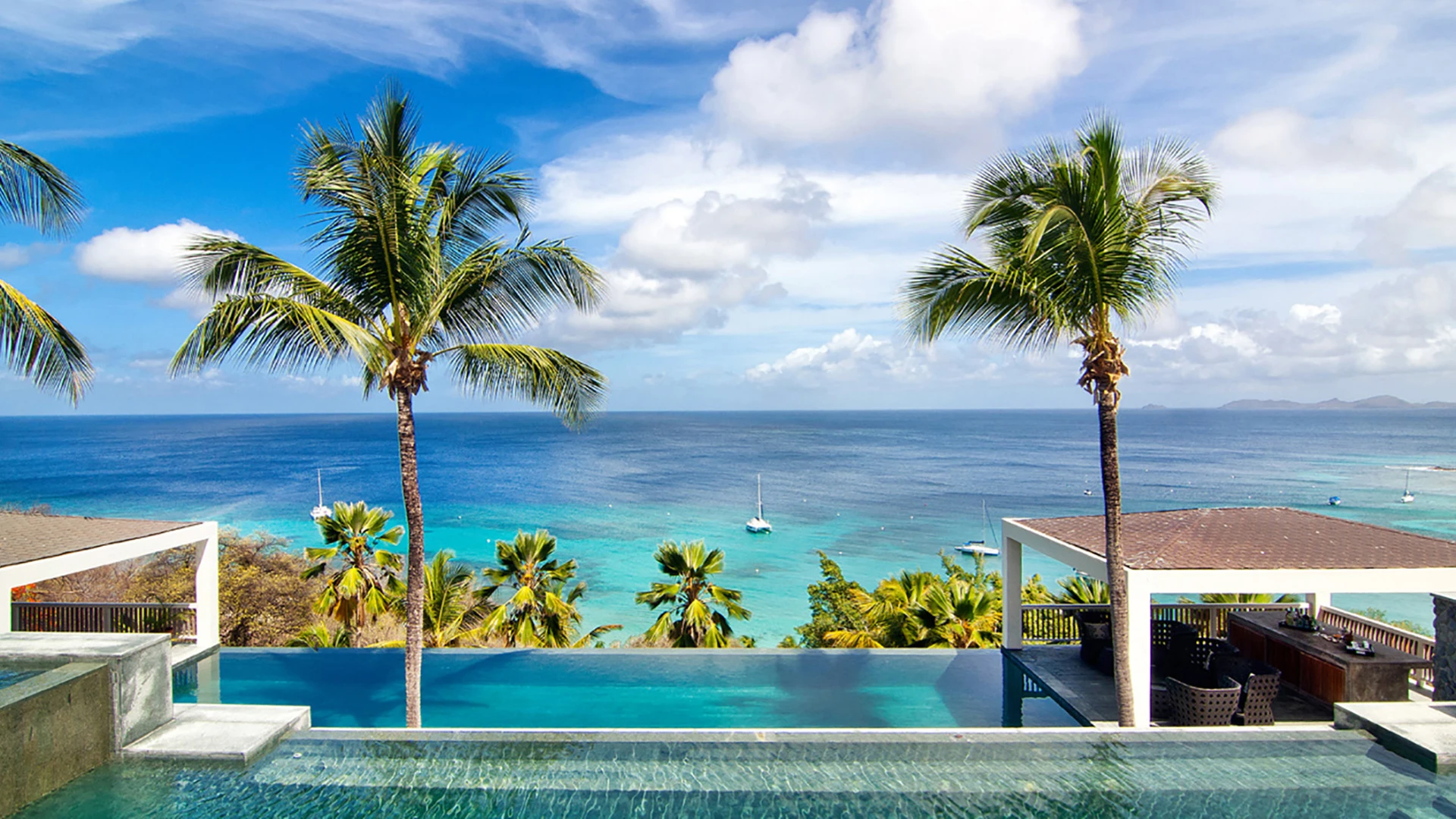 This villa is about sleek Italian style and furnishings, expansive entertainment spaces and two sensational swimming pools, which are regularly featured in the international press. The large open plan living area opens out onto a wraparound veranda with the sundeck beyond. A standalone main bedroom suite offers privacy, space and staggering views and two further pairs of spacious bedroom suites have their own balconies. The glorious pool bar and pavilion framing the larger of the two pools offer the perfect location to relax and enjoy an epic Mustique sunset.